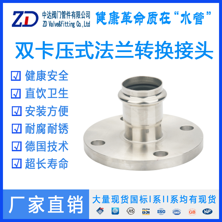 衛(wèi)生及強(qiáng)大的抗腐蝕性,雙卡壓管件及雙卡壓薄壁不銹鋼水管是一種公認(rèn)的健康環(huán)保材料,產(chǎn)品使用壽命長達(dá)50年以上,在使用壽命內(nèi)均能夠滿足起健康和穩(wěn)定性。SUS304不銹鋼管及管件是日本、歐洲以及其它發(fā)達(dá)國家的標(biāo)準(zhǔn)。